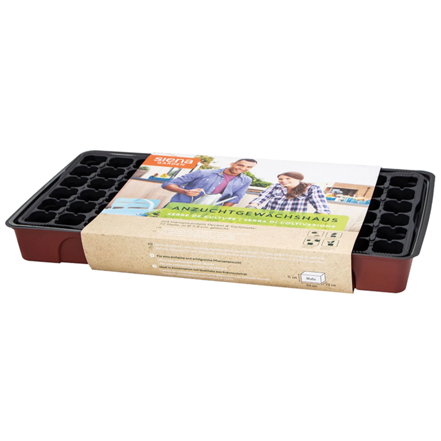 Das Anzuchtgewächshaus von Siena Garden bietet alles Notwendige zum Ziehen von Gemüse, Gartenkräutern und Blumen. Dieses praktische und kompakte Gewächshaus ist aus robustem Kunststoff hergestellt. Sie erhalten das Anzuchtgewächshaus inklusive eines transparenten Deckels und 72 gelochten Kunststofftöpfe.