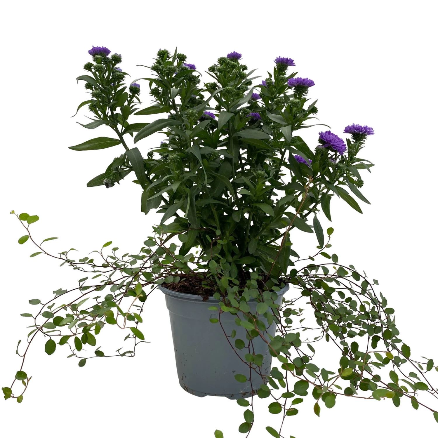 Setzen Sie mit dem Duo aus Glattblatt-Aster und Mühlenbeckia abwechslungsreiche Akzente, die im Sommer und Herbst einen ganz besonderes Farbenspiel bieten. Diese Aster-Pflanzen wurden in der Gärtnerei so kultiviert, dass sie dieses Jahr mit ihrem kompakten, kurzen Wuchs auch für herrliche Arrangements in Balkonkasten, Kübel oder auf dem Grab geeignet sind. In den kommenden Jahren erreichen die Astern dann ihre eigentliche Wuchshöhe von 80 bis 120 cm und sind Highlights in Ihrem Staudenbeet. In der Kombination mit der bodendeckenden oder in Kübel oder Kasten überhängend wachsenden Mühlenbeckia ergibt sich ein harmonisches, abwechslungsreiches Bild.