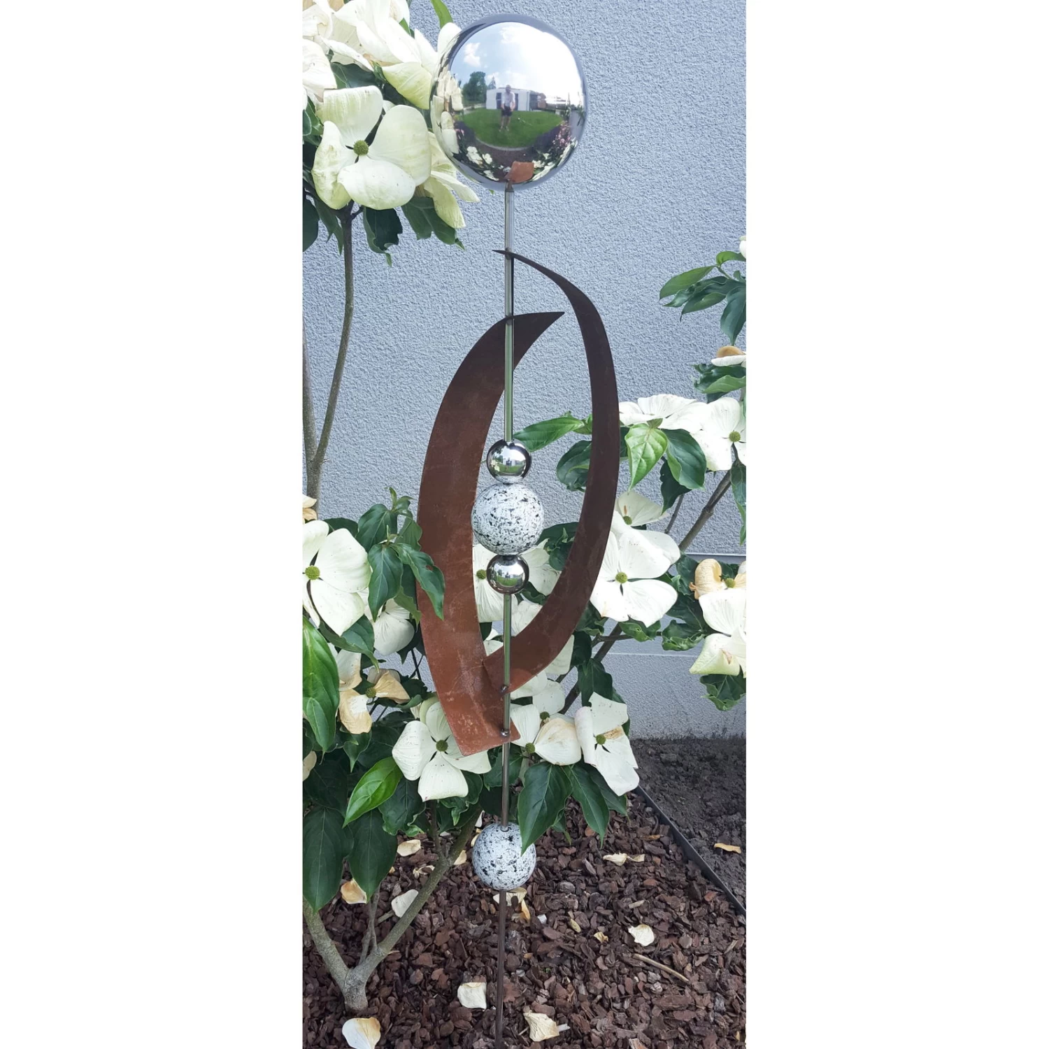 Mit dem Beetstecker Deimos aus Edel- und Cortenstahl wird jedes Blumenbeet zum absoluten Highlight. Die hochwertige Garten-Skulptur dient zur Auflockerung von Rosenbeeten und Pflanzentöpfen und sorgt mit ihrem stilvollen Design für schöne Akzente. Der Beetstecker Deimos wird simpel in die Blumenerde gesteckt.