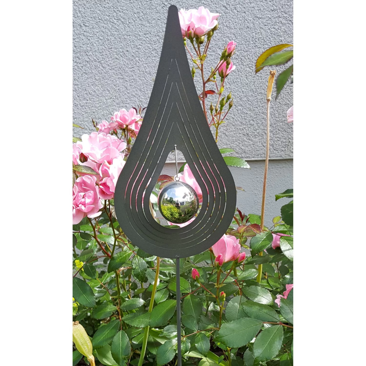 Farbige Blumenbeete werden jetzt noch schöner – mit dem Beetstecker Tropfen aus Stahl. Die wunderschöne Skulptur für den Garten in modischer dunkelgrauer Lackierung mit Edelstahlkugel lässt sich in wenigen Handgriffen in Pflanzenbeete oder Blumenkübel stecken und wird so zu einem echten Eyecatcher.