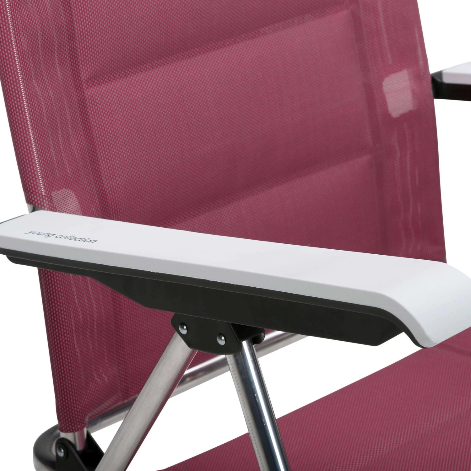 Die Relaxliege Young Collection von Best in effektvoller Farbe Lila ist eine komfortable und funktionell gestaltete Sitzgelegenheit für den Outdoorbereich und außerdem fürs Camping oder für den Strand ideal. Das robuste Gestell aus Leichtmetall Aluminium ist doppelseitig mit dem innovativen Ergotex-Gewebe umspannt. Das Material Ergotex ist nicht nur feuchtigkeits- und UV-beständig, sondern auch reißfest und zudem antibakteriell. Dabei lassen sich sowohl das Kopf- als auch das Fußteil mehrfach verstellen, sodass Sie Ihre Sitzposition Ihren individuellen Gewohnheiten optimal anpassen können. Die Relaxliege Young Collection überzeugt zudem mit einem stabilen Stand und ist dank ihres moderaten Eigengewichts mobil. Einem komfortablen Sitzgenuss im Freien steht daher nichts im Wege.