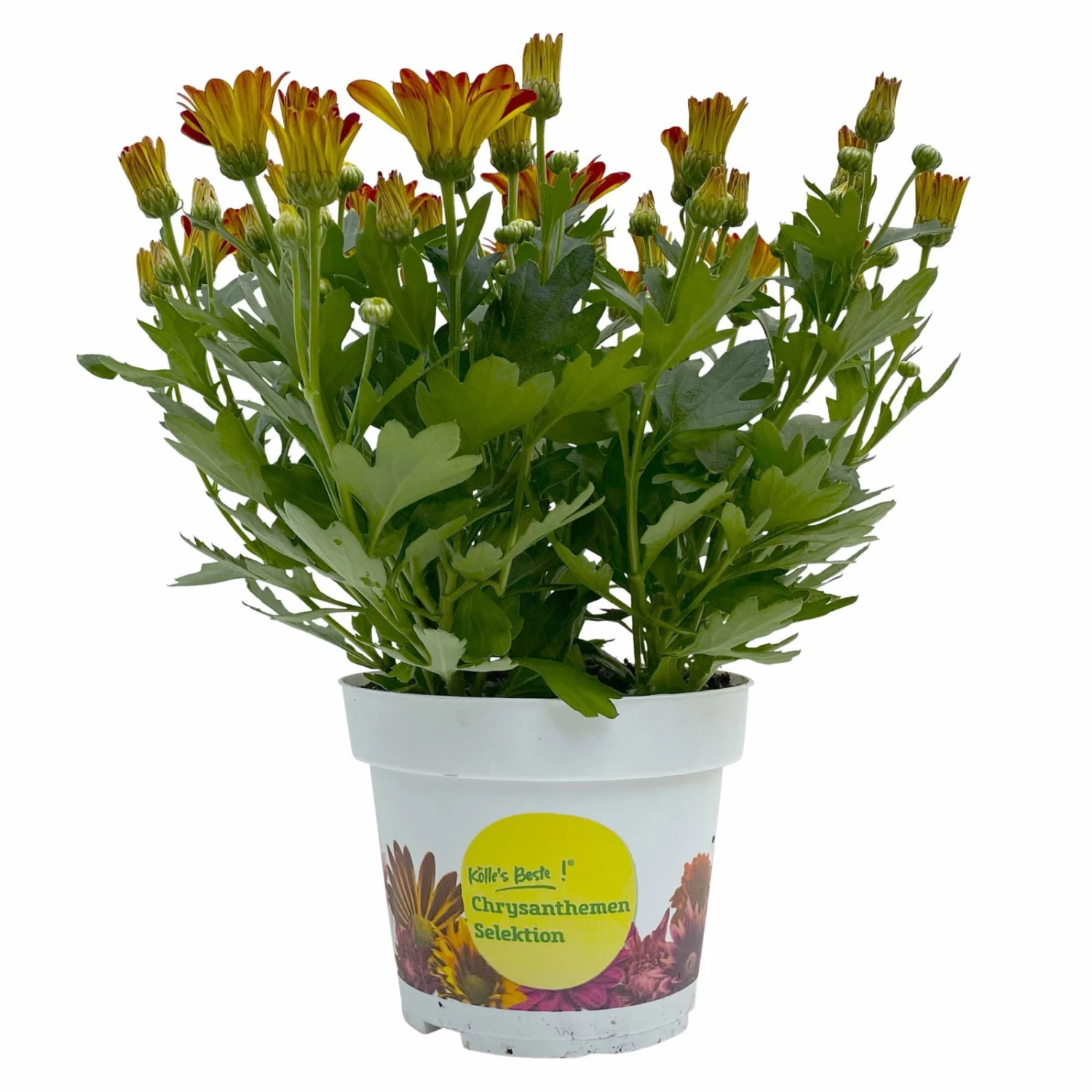 Chrysanthemen ‚Rainbow Circus‘ Rot-gelb Gestreift Topf-Ø 14 Cm, 4er-Set