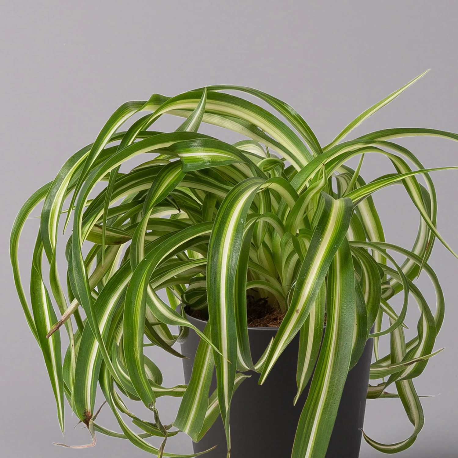 Die Grünlilie (Chlorophytum comosum) zählt zu den Klassikern unter den Zimmerpflanzen und war die Trendpflanze der 70er-Jahre. Seit geraumer Zeit feiert die Grünlilie als absolut pflegeleichte und robuste Grünpflanze ein Comeback und schmückt Wohn- und Badezimmer mit ihrem Retro-Charme. Charakteristisch sind die länglich-lanzettlichen Blätter, die je nach Sorte gelb bis grün gestreift sind. Die Blätter entwickeln sich überhängend aus einer Rosette heraus und formen einen dichten Blattschopf. Grünlilien erreichen bei guter Pflege eine Höhe von bis zu 40 cm.