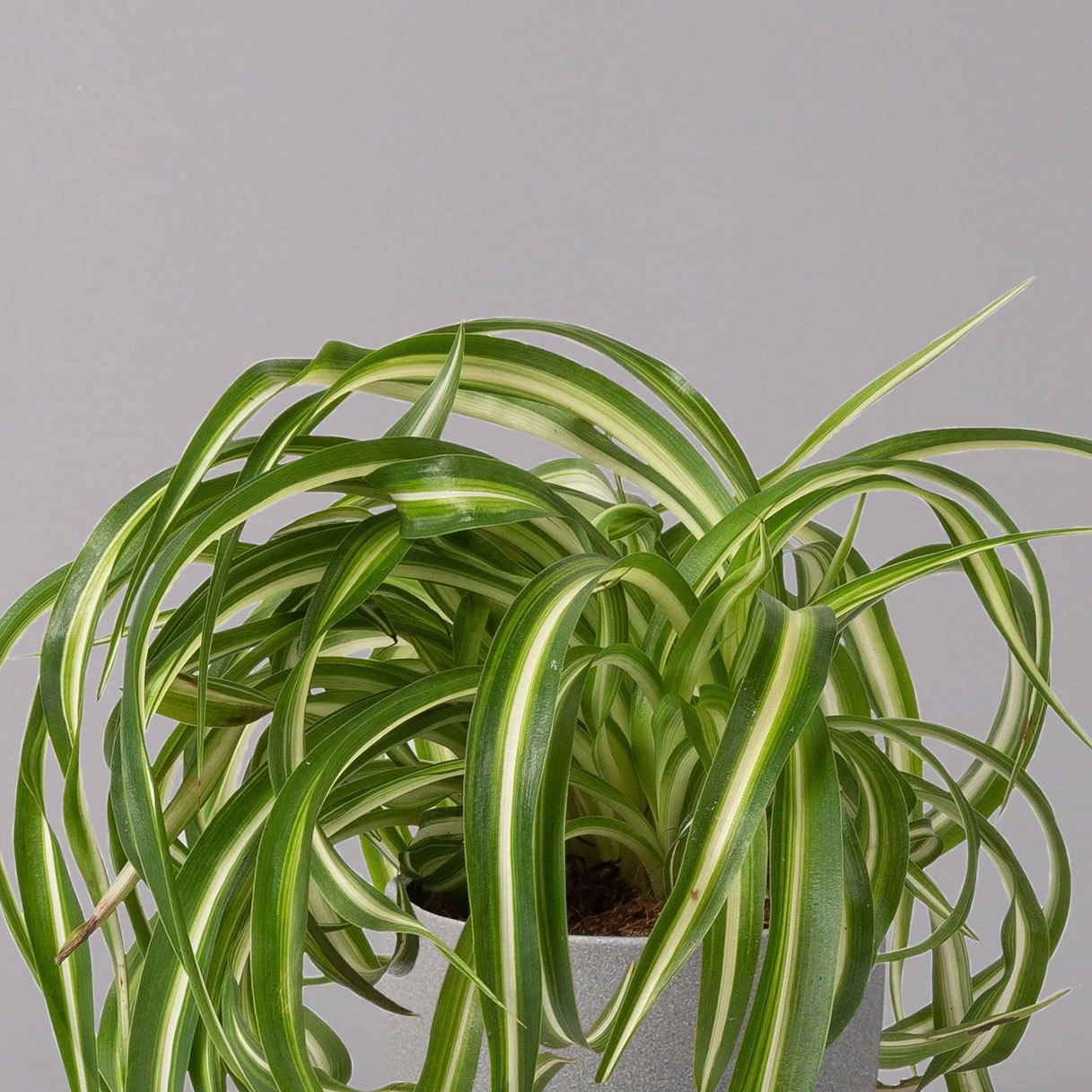 Die Grünlilie (Chlorophytum comosum) zählt zu den Klassikern unter den Zimmerpflanzen und war die Trendpflanze der 70er-Jahre. Seit geraumer Zeit feiert die Grünlilie als absolut pflegeleichte und robuste Grünpflanze ein Comeback und schmückt Wohn- und Badezimmer mit ihrem Retro-Charme. Charakteristisch sind die länglich-lanzettlichen Blätter, die je nach Sorte gelb bis grün gestreift sind. Die Blätter entwickeln sich überhängend aus einer Rosette heraus und formen einen dichten Blattschopf. Grünlilien erreichen bei guter Pflege eine Höhe von bis zu 40 cm.
