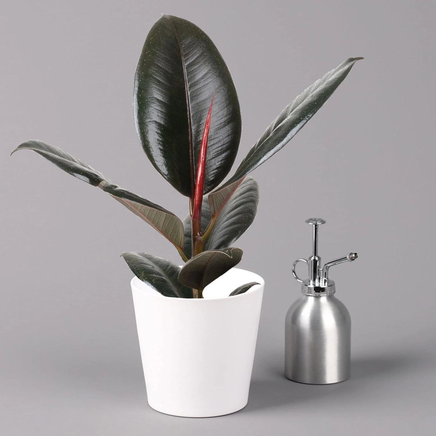 Der Ficus elastica ‚Robusta‘ begeistert mit großen, ledrigen Blättern und gilt als besonders widerstandsfähig. Der anspruchslose Gummibaum, so der deutsche Name dieser Trendpflanze, lässt sich mit gleichem Erfolg zur Begrünung von Büros, Arztpraxen oder Wohnräumen einsetzen. Ein Ficus ist eine richtige Wohlfühlpflanze, da dieses Tropengewächs der Luft unterschiedliche Schadstoffe entzieht und somit für ein besseres Raumklima sorgt. An den Standort stellt der Ficus elastica ‚Robusta‘ keine allzu hohen Ansprüche, denn der Gummibaum gibt sich sowohl mit hellen als auch mit halbschattigen Lagen durchaus zufrieden. Problematisch können neben einem Überfluss an direkter Sonne noch Zugluft und Staunässe sein. Auf Wunsch dürfen Sie Ihren Ficus gerne in der warmen Jahreszeit an einem windgeschützten Standort im Freien pflegen. Bitte beachten Sie, dass der Milchsaft des Gummibaumes giftig ist.