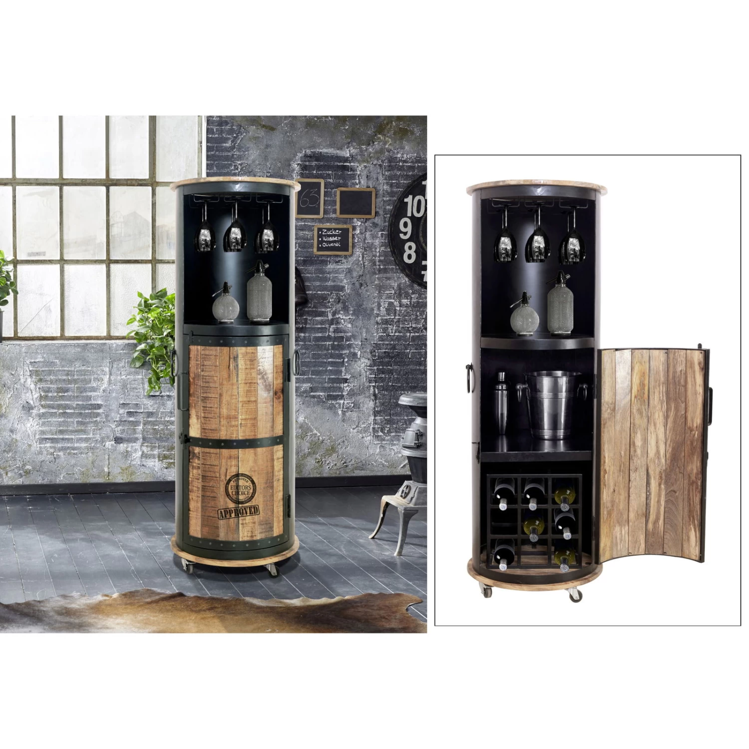IRON Bar Auf Rollen Für 9 Flaschen, Mangoholz, Ca. 57 X 57 X H 165 Cm