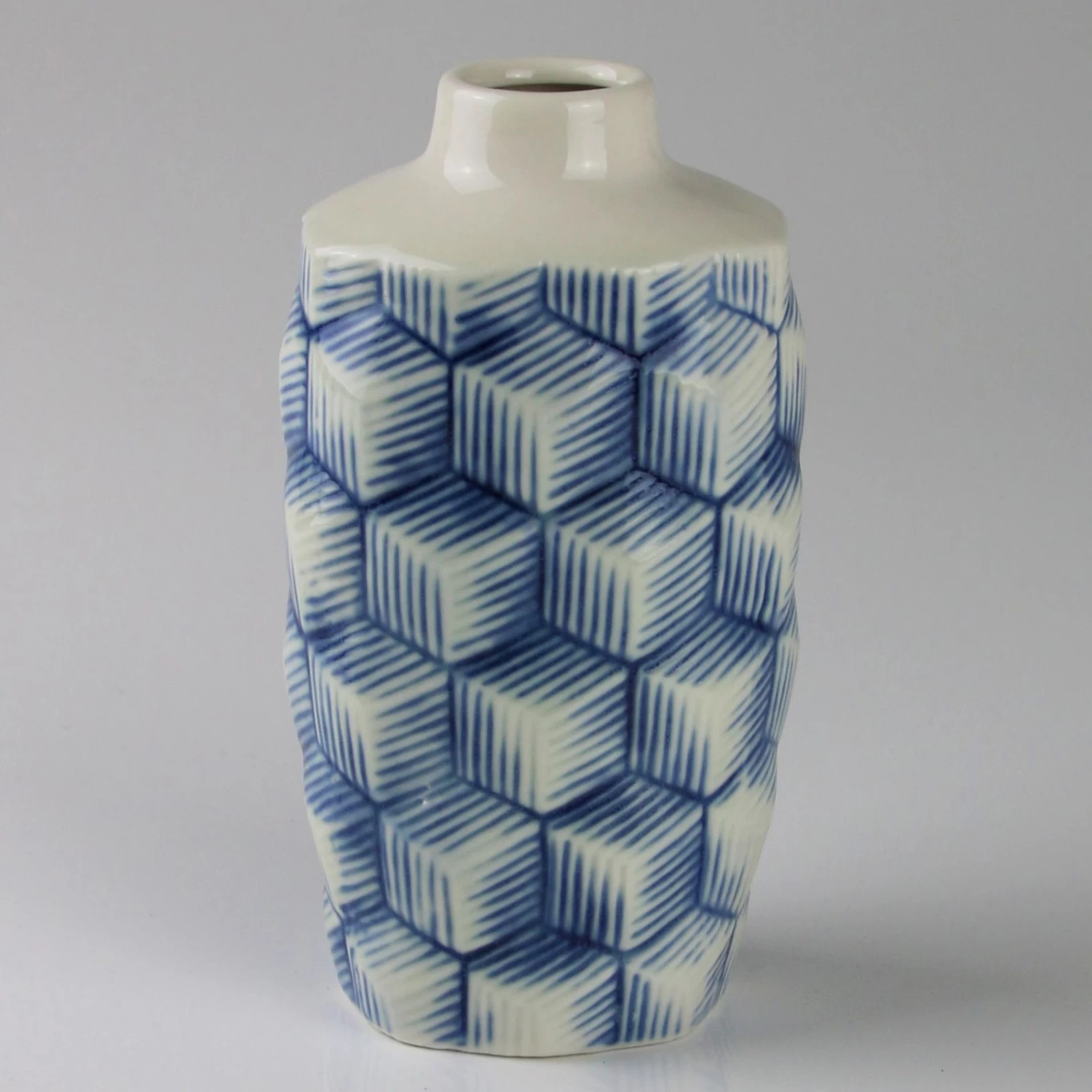 Keramikvase Mit Rautenmuster, Blau-weiß, 8 X 9 X H 17 Cm