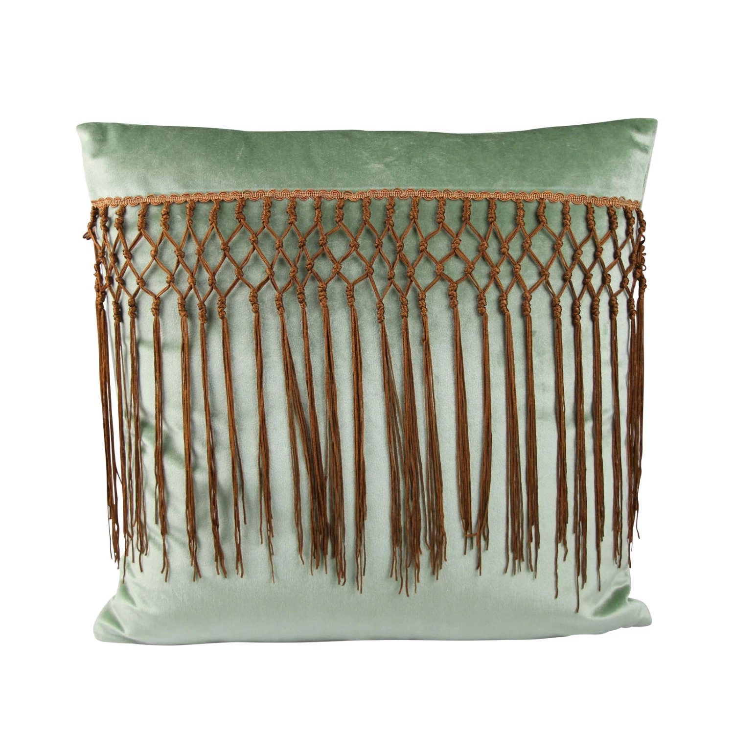 Kissen Mint Fransen Samt 45 X 45 Cm