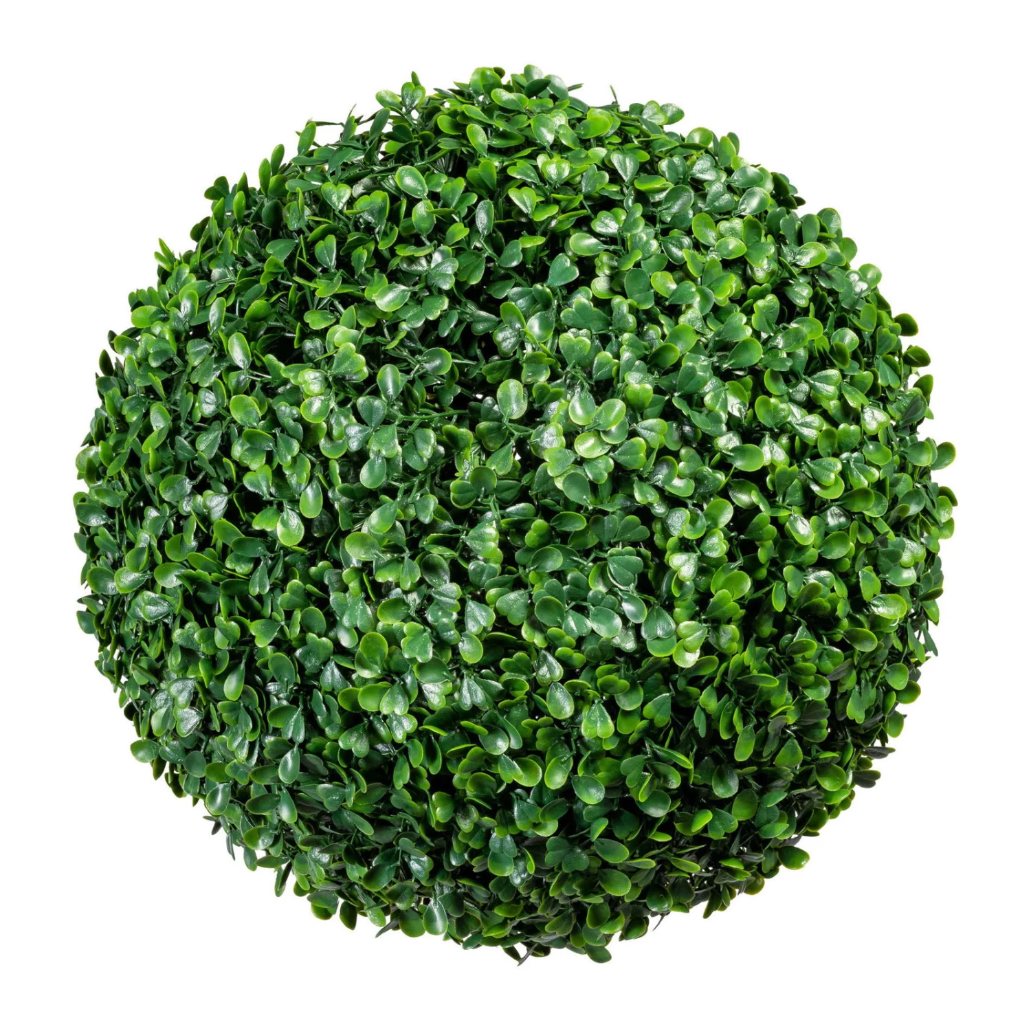 Diese Kunstpflanze ist bedingt UV-beständig und daher für den temporären Einsatz draußen geeignet. Dabei sieht die künstliche Buchsbaumkugel einem echten Buchsbaum zum Verwechseln ähnlich. Zum Begrünen von gewerblichen und privaten Räumen ist die Kunstpflanze Buchsbaumkugel bestens geeignet, ohne dass Sie sich um den Rückschnitt und die Pflege kümmern müssen.