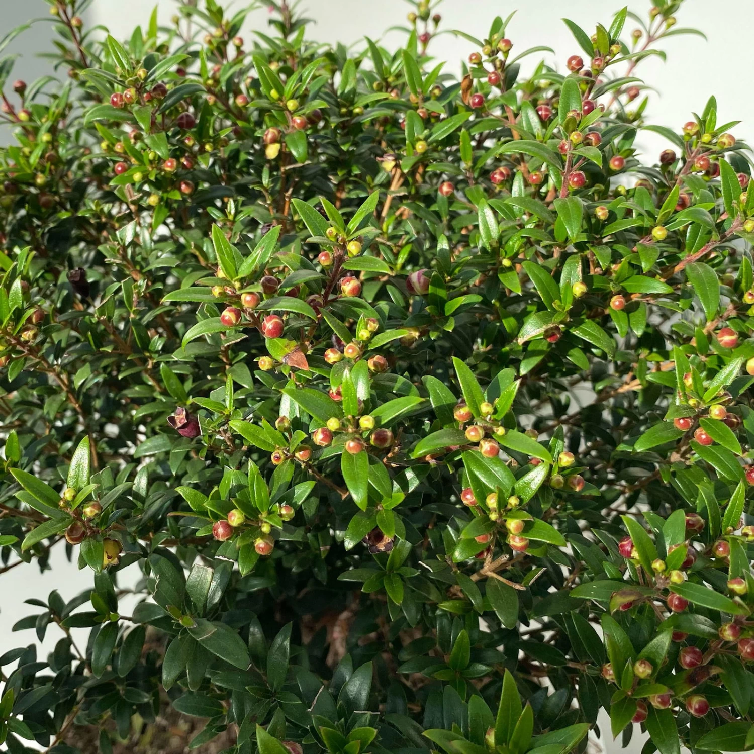 Die Myrte ist sehr schnittverträglich und kann gut in verschiedenen Formen, wie z.B. Kugel oder Pyramide gebracht werden. Das regelmäßige Entspitzen fördert ein buschiges, dichtes Wachstum.