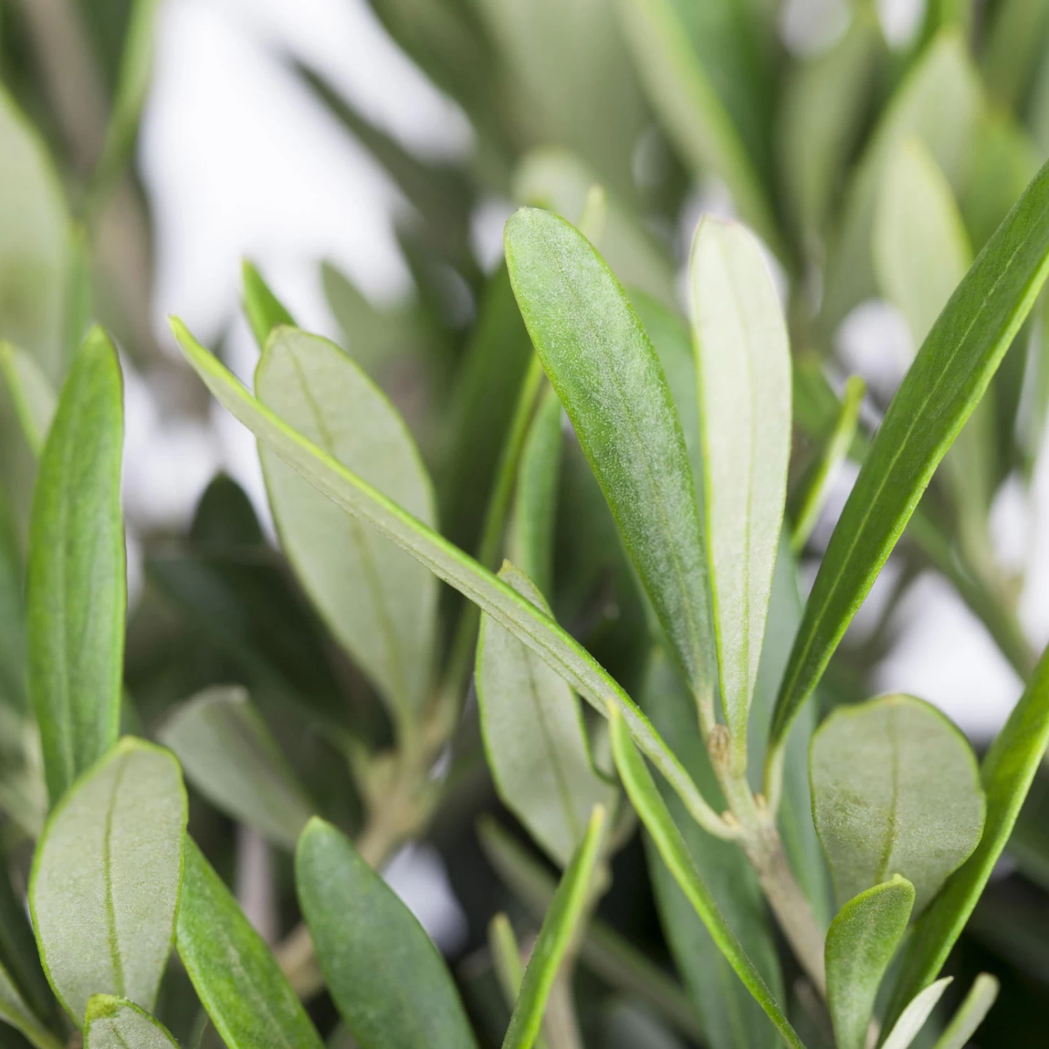 Die Olive (Olea europaea) überzeugt mit ihren charakteristisch grün und silbergrauen, schmalen Blättern und der silbrig anmutenden Rinde. Die Blätter stehen wechselständig an kurzen Stielen. Die Olive, auch Ölbaum genannt, stammt ursprünglich aus dem Mittelmeerraum und ist seit Tausenden Jahren als Nutz- und Symbolpflanze bekannt. Die mediterrane Pflanze wächst sehr langsam und kann sich am Naturstandort zu beeindruckenden Bäumen von bis zu 20 Metern entwickeln. Im Kübel auf der Terrasse wird die Olive meist nicht größer als 2 Meter.
