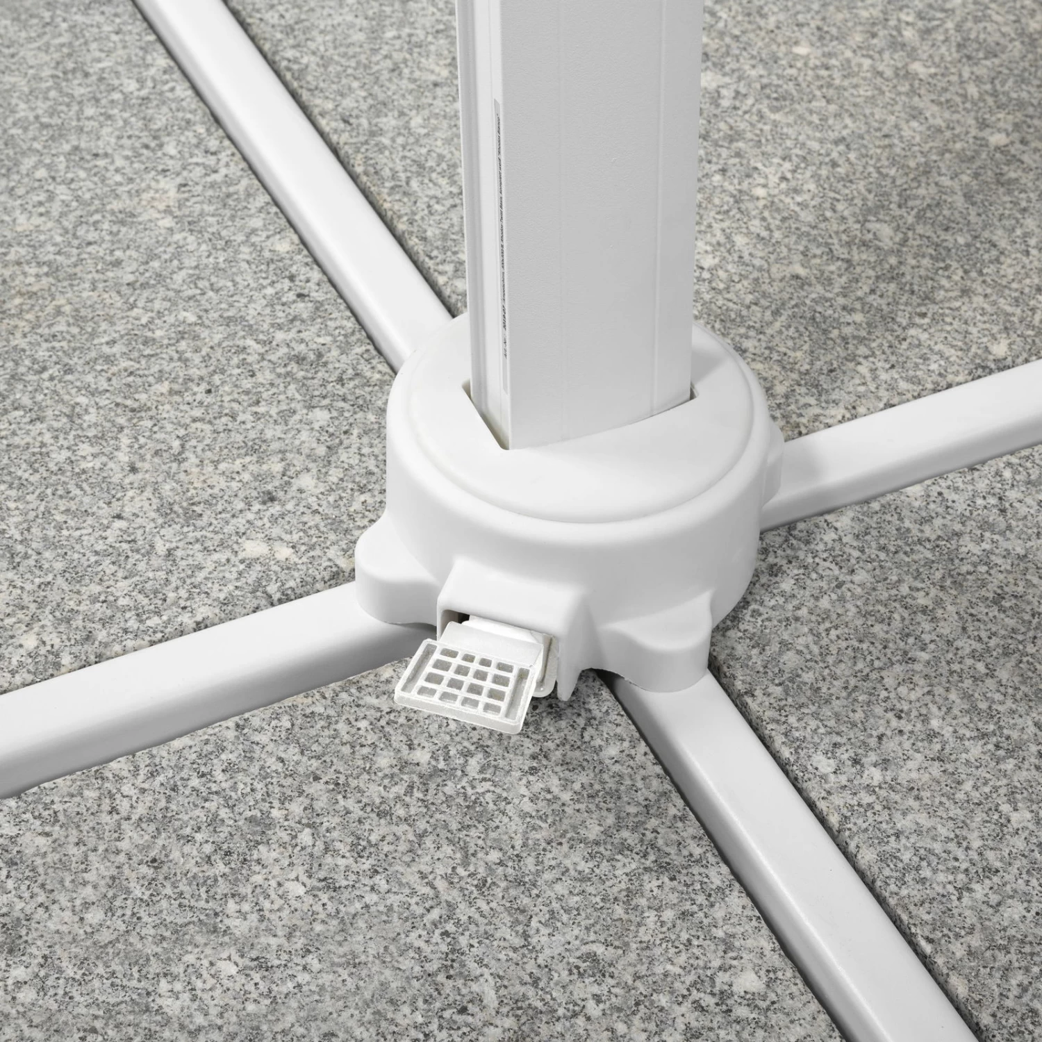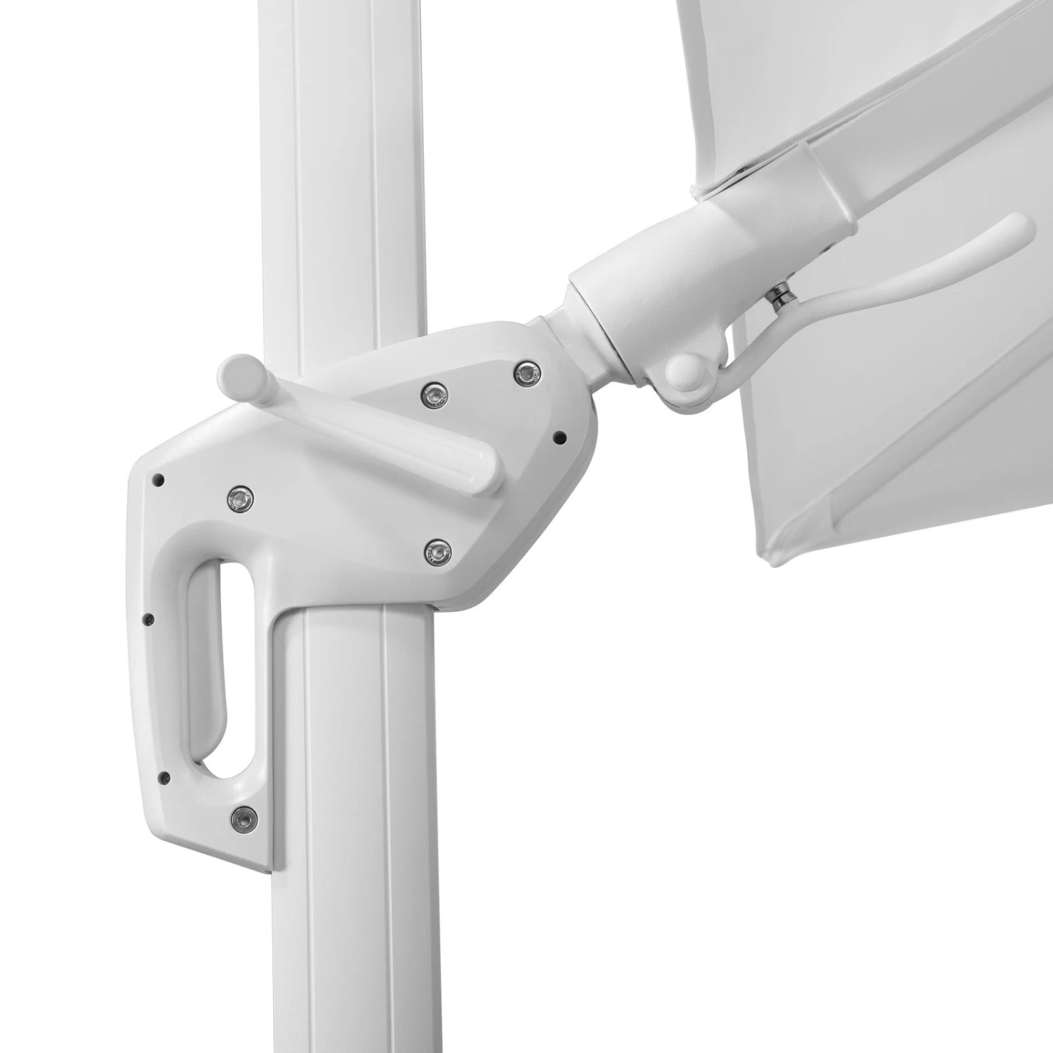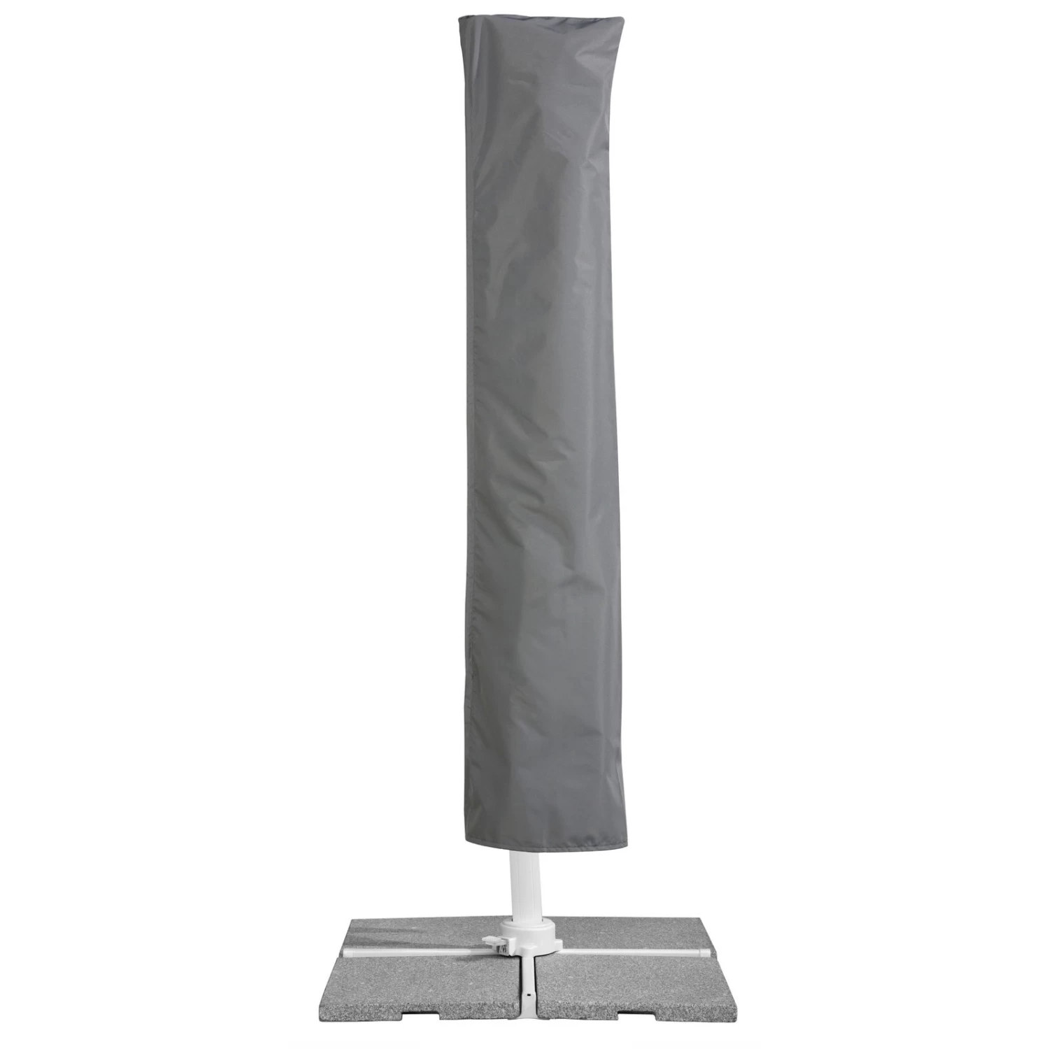 Der Ampelschirm Rhodos Twist Bianco von Schneider schützt Sie zuverlässig vor schädlicher Sonneneinstrahlung. Diesen hochwertigen Sonnenschirm erhalten Sie inklusive einer Schutzhülle mit Reißverschluss und eines Kreuzständers zum Beschweren mit Betonplatten. Dank einer ausgefeilten Mechanik können Sie die Position des Pendelschirms exakt dem Sonnenstand anpassen.