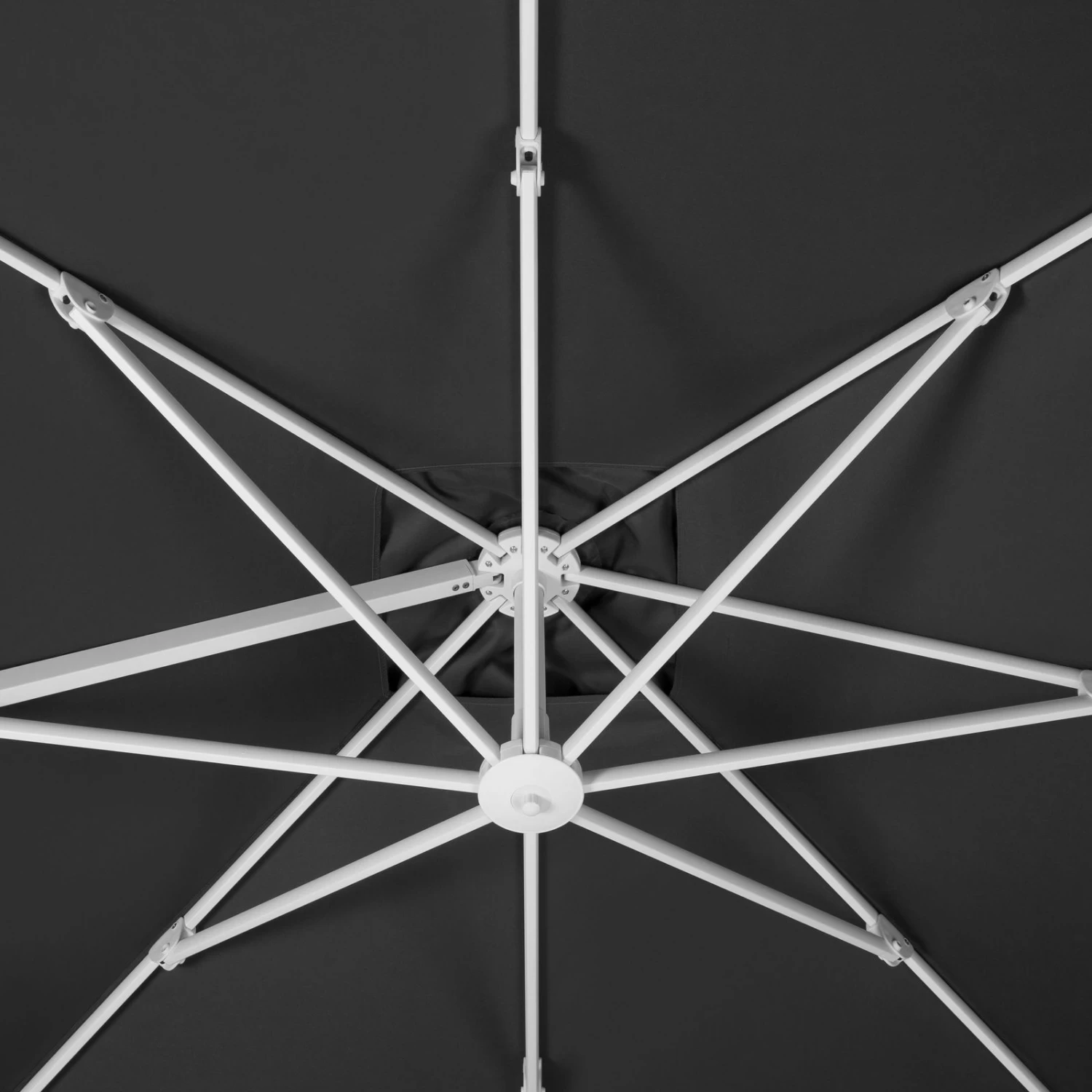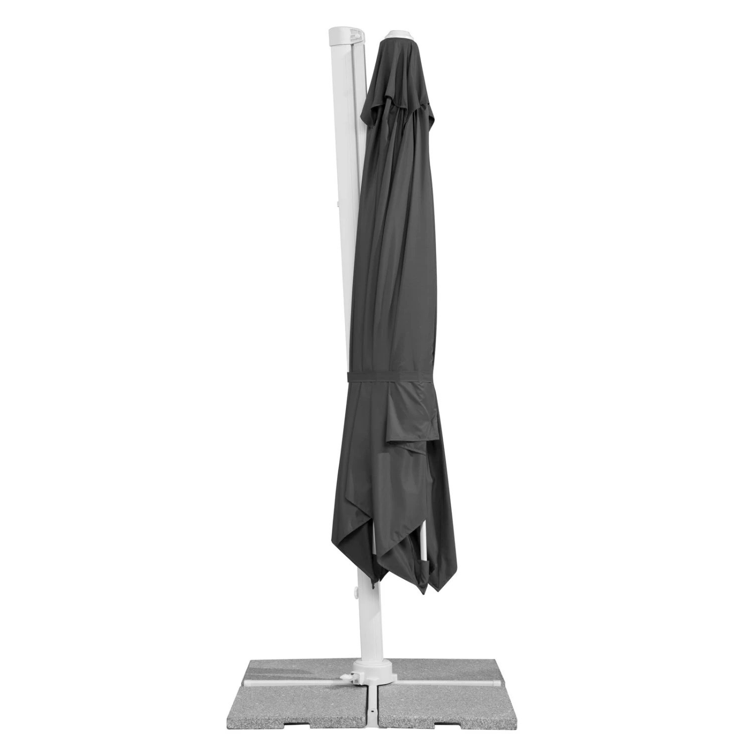 Der Ampelschirm Rhodos Twist Bianco von Schneider schützt Sie zuverlässig vor schädlicher Sonneneinstrahlung. Diesen hochwertigen Sonnenschirm erhalten Sie inklusive einer Schutzhülle mit Reißverschluss und eines Kreuzständers zum Beschweren mit Betonplatten. Dank einer ausgefeilten Mechanik können Sie die Position des Pendelschirms exakt dem Sonnenstand anpassen.