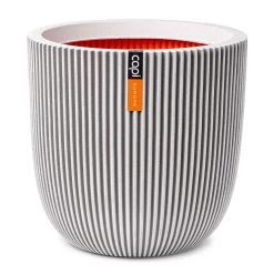 Die Pflanzvase ‚Groove‘ von Capi Europe besteht aus recyceltem Kunststoff und besticht durch eine elegante Linienführung. Die Innenschicht in Orange setzt einen Kontrastpunkt zum edlen Elfenbein der Oberfläche und macht die Pflanzvase bruchfest sowie wärmedämmend. Das frostbeständige und UV-resistente Material sorgt dafür, dass dieses Pflanzgefäß für den Dauereinsatz draußen geeignet ist.