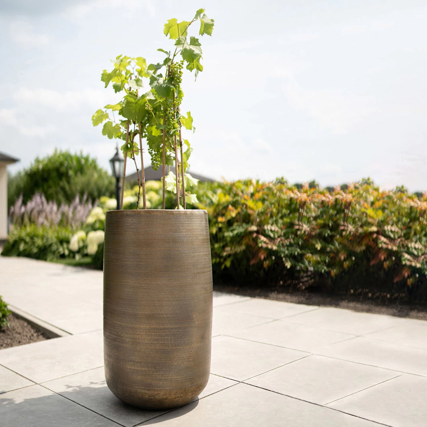 Dank seiner schlanken Form avanciert dieser Pflanztopf in jedem Kontext zu einem ungewöhnlichen Highlight. Das Pflanzgefäß ‚Rowen‘ von Kölle erscheint in schicker Goldoptik und begeistert mit seiner aufwendig per Hand eingearbeiteten Oberflächentextur für einen einzigartigen Look. Dieser elegante Blumentopf besteht aus Leichtmetall Aluminium, das sich durch ein geringes Eigengewicht auszeichnet und außerdem unempfindlich gegenüber jeglichen Witterungseinflüssen ist. Somit können Sie das Pflanzgefäß ‚Rowen‘ problemlos ganzjährig im Außenbereich platzieren. Setzen Sie mit diesem luxuriösen Blumentopf Ihre Lieblingspflanzen gekonnt in Szene, zum Beispiel Gewächse mit überhängendem Wuchs wie Efeu, mehrere Begonien- oder Geranienarten. Aber auch aufrecht wachsende Pflanzen lassen in Kombination mit ‚Rowen‘ ein harmonisches Gesamtbild entstehen.