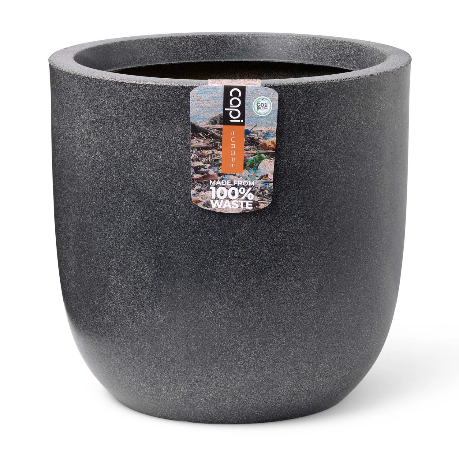 Mit dem dekorativen grauen Pflanzgefäß ‚Smooth‘ leisten Sie einen wertvollen Beitrag zum Umweltschutz, denn dieser Pflanztopf aus dem Hause Capi Europe besteht zu 100 Prozent aus recycelten Materialien. Vor allem Fischernetze, Korken, aber auch alte Kunststoffpflanztöpfe kommen dabei zum Einsatz. Das Pflanzgefäß ‚Smooth‘ überzeugt nicht nur durch eine anspruchsvolle Optik, sondern ist auch bruch- und frostfest sowie UV-beständig.