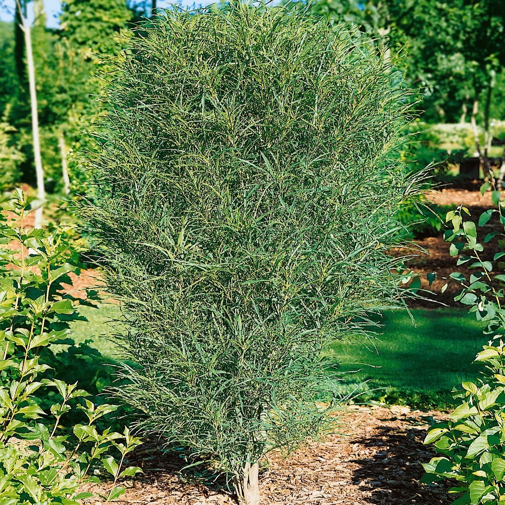 Der Säulen-Faulbaum Rhamnus frangula ‚Fine Line’® begeistert mit seinen feinfiedrigen Blättern und kompaktem, säulenartigem Wuchs. Dank einer effektvollen gelben Herbstfärbung und rot-schwarzen Früchten avanciert der Faulbaum in dieser Jahreszeit zu einem besonderen Highlight. Das dekorative Gehölz erreicht Wuchshöhen bis zu 250 Zentimetern und wird dabei zwischen 40 und 70 Zentimetern breit. Je nach Wunsch können Sie den Faulbaum als Solitär in Ihrem Vorgarten, als Heckenpflanze oder zum Bestücken von Kübeln auf Ihrer Terrasse in Szene setzen. Der Rhamnus frangula ‚Fine Line’® ist unkompliziert, sehr winterhart und widerstandsfähig. Der Faulbaum bevorzugt humose, durchlässige Substrate, mag jedoch keine Staunässe. Sonnige und halbschattige Lagen sind für dieses Gehölz genau richtig. Der Säulen-Faulbaum ist ein tolles Insektennährgehölz. Die unscheinbaren, kleinen, aber besonders nektarreichen Blüten, werden gut von Bienen und anderen Insekten besucht.