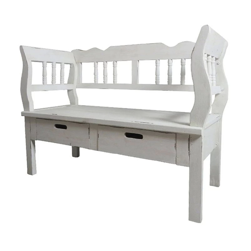 Die Sitzbank „Jack“ ist komplett im eleganten Landhausstil gehalten. Auf den ersten Blick erkennt man, dass hier viel Wert auf Liebe zum Detail gelegt wurde. Die klaren Linien und gekonnt platzierten Akzente sorgen dafür, daß diese Sitzbank ein Highlight in Ihrem Zuhause wird. Die Sitzbank hat ein hübsches Design in Antikweiß und ist mit zwei praktischen Schubladen versehen.