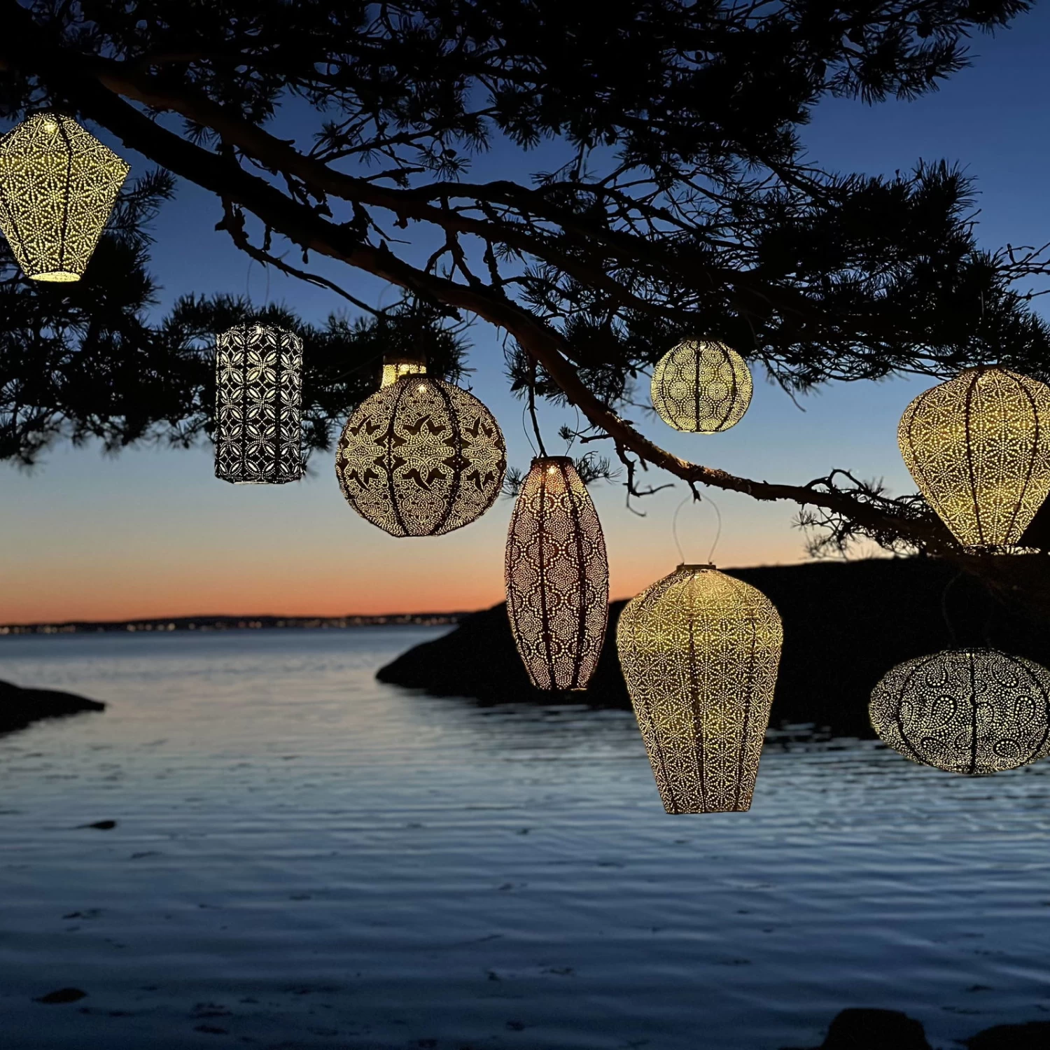Diese petrolfarbene Solarlaterne ‚Bulb 16‘ zaubert hübsche Lichtmuster auf Ihre Terrasse. Die stimmungsvollen Solarlampions schaffen ein behagliches Ambiente, in dem Sie am Abend entspannen können. Dank des strapazierfähigen Materials Tyvek R1443 PU, 43 g/qm haben Sie lange Freude an dieser 16 x 20 cm großen Laterne, die sich zum Transportieren zusammenfalten lässt.