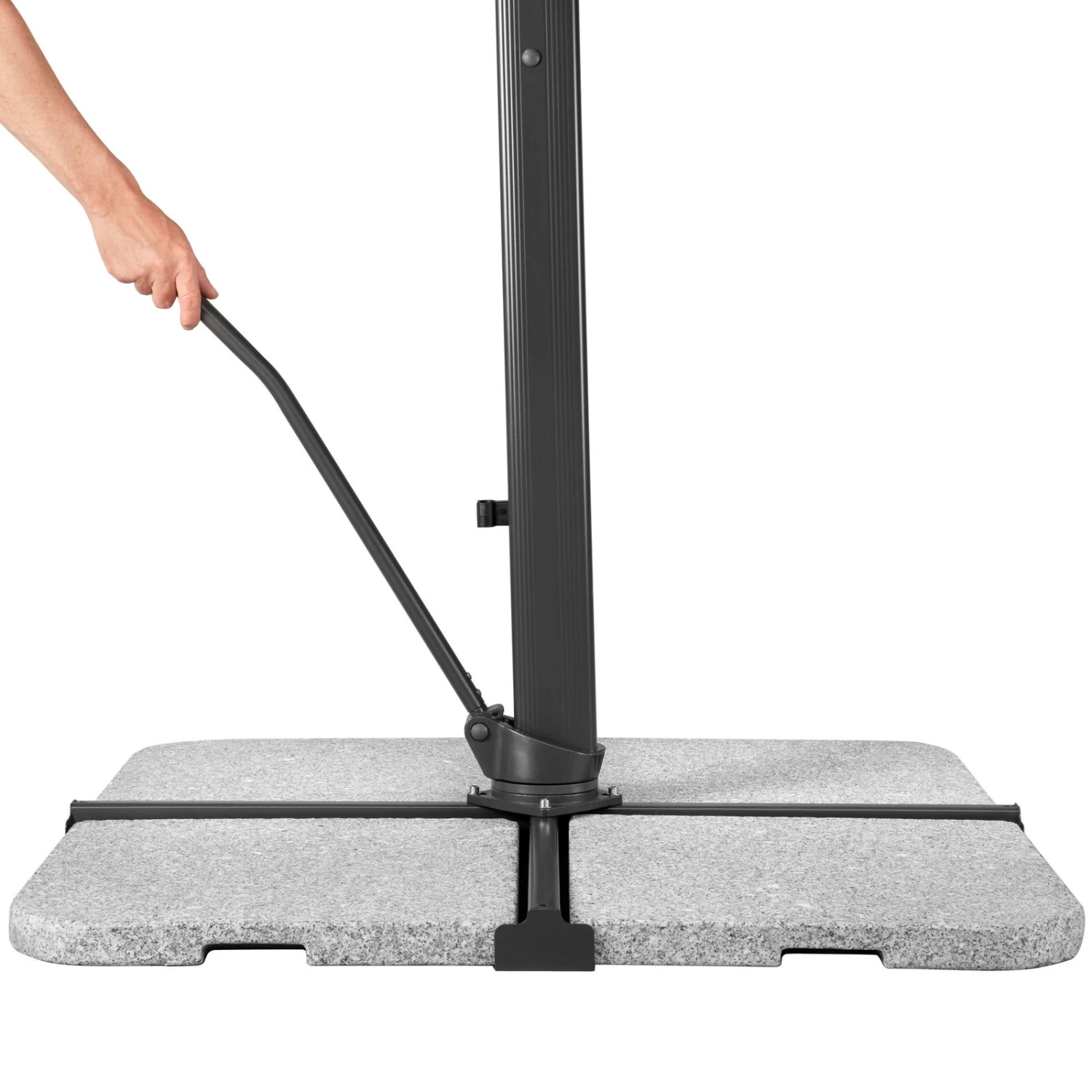 Dieser Pendelschirm überzeugt durch sein intelligentes Design und ist mit wenigen Handgriffen an den aktuellen Sonnenstand angepasst. Sie erhalten den Ampelschirm ‚Rhodos Smart‘ von Schneider Schirme inklusive eines praktischen Ständers, zusätzlich benötigen Sie Wegeplatten 50 x 50 cm. Der wasserabweisende, lichtechte Bezug lässt sich zur Reinigung problemlos abnehmen.