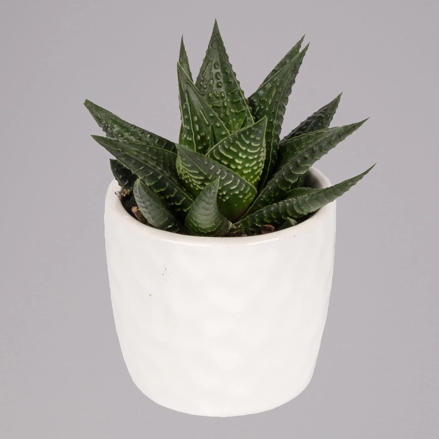 Falls Sie nach einer exotischen Begrünung für Ihr vollsonniges Südfenster suchen, dann bieten sich unsere Minisukkulenten in formschönen Dekotöpfen geradezu an. Diese sukkulenten Zimmerpflanzen sind ausgesprochen pflegeleicht und zeigen eine hohe Toleranz in Hinblick auf die Wassergaben. Lassen Sie das Substrat gründlich antrocknen, bevor Sie Ihre Mini-Sukkulenten wieder gießen. Eine gute Drainage ist für die Pflanzengesundheit entscheidend, daher eignet sich Kakteenerde für die Pflege der Pflanzen am besten. Im Sommer brauchen die Sukkulenten recht viel Wärme, sodass die Raumtemperaturen nicht unter 20 Grad Celsius fallen dürfen. In der kalten Jahreszeit reichen für das Wohlbefinden moderate zehn Grad Celsius aus. Daher sind unsere stylischen Mini-Sukkulenten zum Beispiel auch für einen beheizbaren Wintergarten die richtige Wahl.