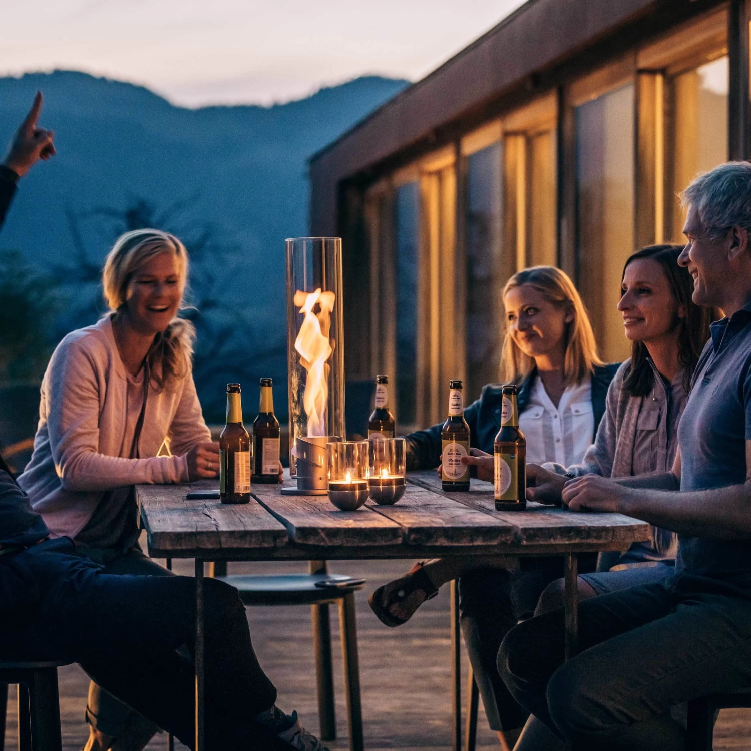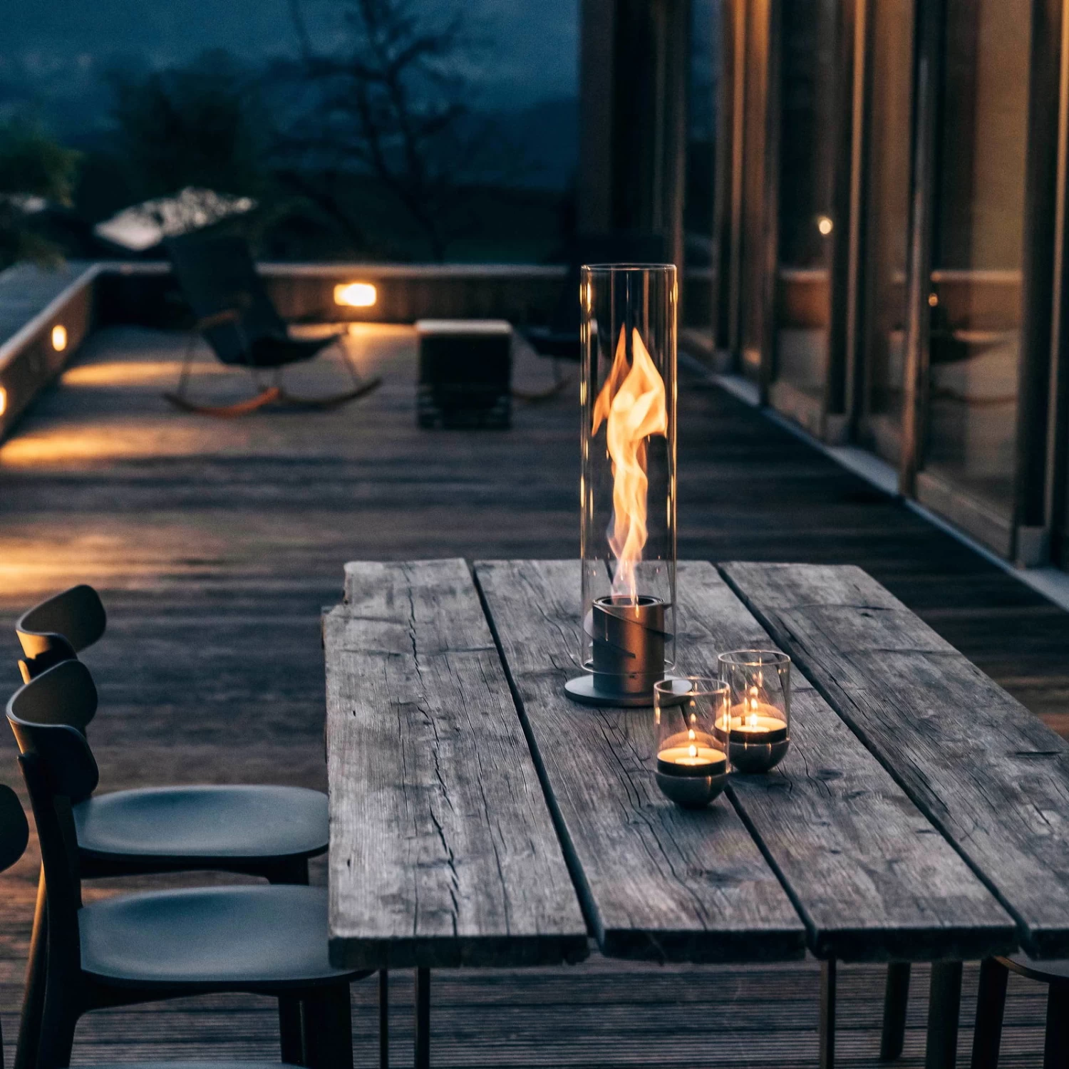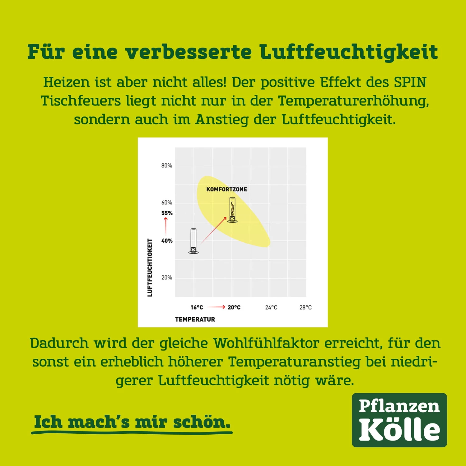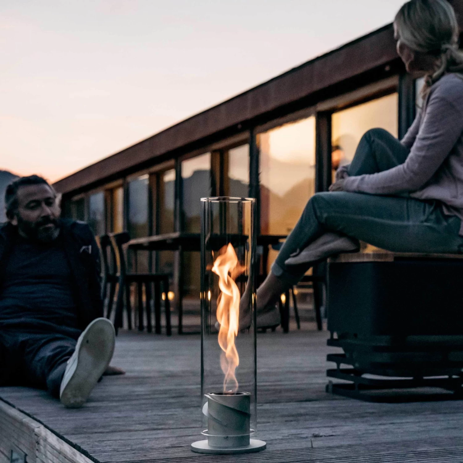 Lassen Sie sich von dem verspielten Tanz der Feuerzungen faszinieren. Das Tischfeuer SPIN von Höfats mit einem transparenten Glaszylinder ist für verträumte Abende auf der Terrasse oder im Garten ideal. Bis zu ca. 80 min. reicht eine Ladung Bioethanol. Zum vorzeitigen Beenden des Feuerspiels steht Ihnen ein Löschdeckel zur Verfügung.